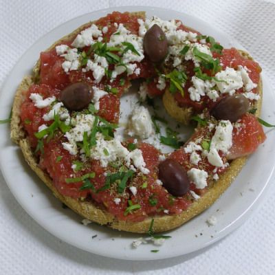 Βασίζεται στο Κρητικό παξιμάδι, συνήθως κριθαρένιο. Πάνω στο (μουλιασμένο ή όχι) παξιμάδι τρίβεται ντομάτα και πάνω απ' τη ντομάτα τυρί φέτα ή κρητική μυζήθρα σε σβώλους.